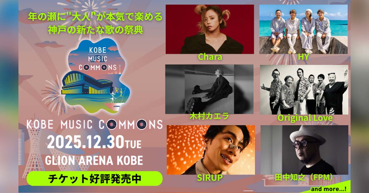 Ring out the year in style at KOBE MUSIC COMMONS 2025, returning to Glion Arena Kobe on December 30th with an incredible second lineup announcement! This special year-end event brings together some of Japan’s most beloved and genre-defining artists—Chara, HY, 木村カエラ, Original Love, SIRUP, and 田中知之(FPM), with even more to come.